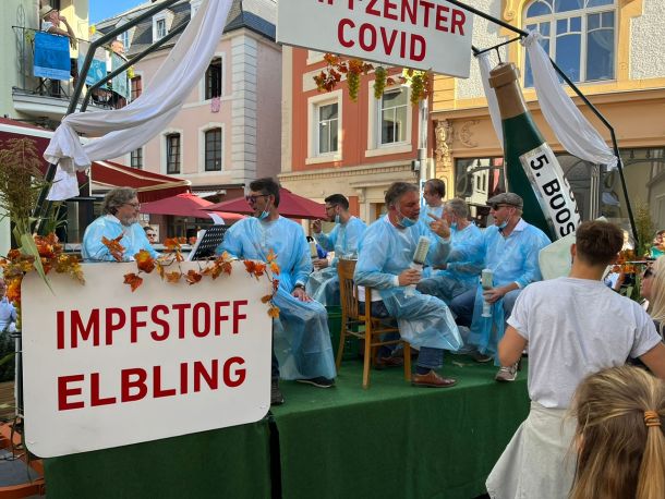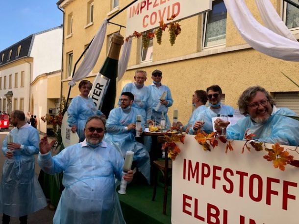 D’Rhäifränsch ass mam Won ‚Haut den Owend‘ um Cortège vum Maacher Wäin- an Drauwefest ënnerwee.
