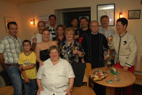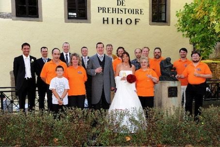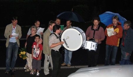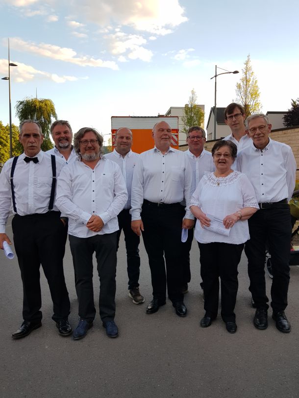 Eis Tatta Germaine kritt 60 Joer. Um 6 Auer an der Fréi sangen d'Elblinger hir den obligate Ständchen virun der Hausdir ....